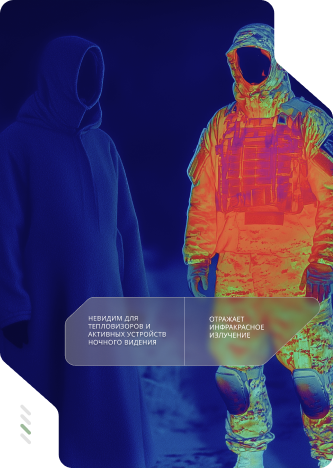 Тактический плащ "Инвизор" разработан для маскировки от средств обнаружения в инфракрасном диапазоне. Уникальный материал плаща эффективно снижает тепловую сигнатуру, делая его незаменимым в тактических и разведывательных операциях.